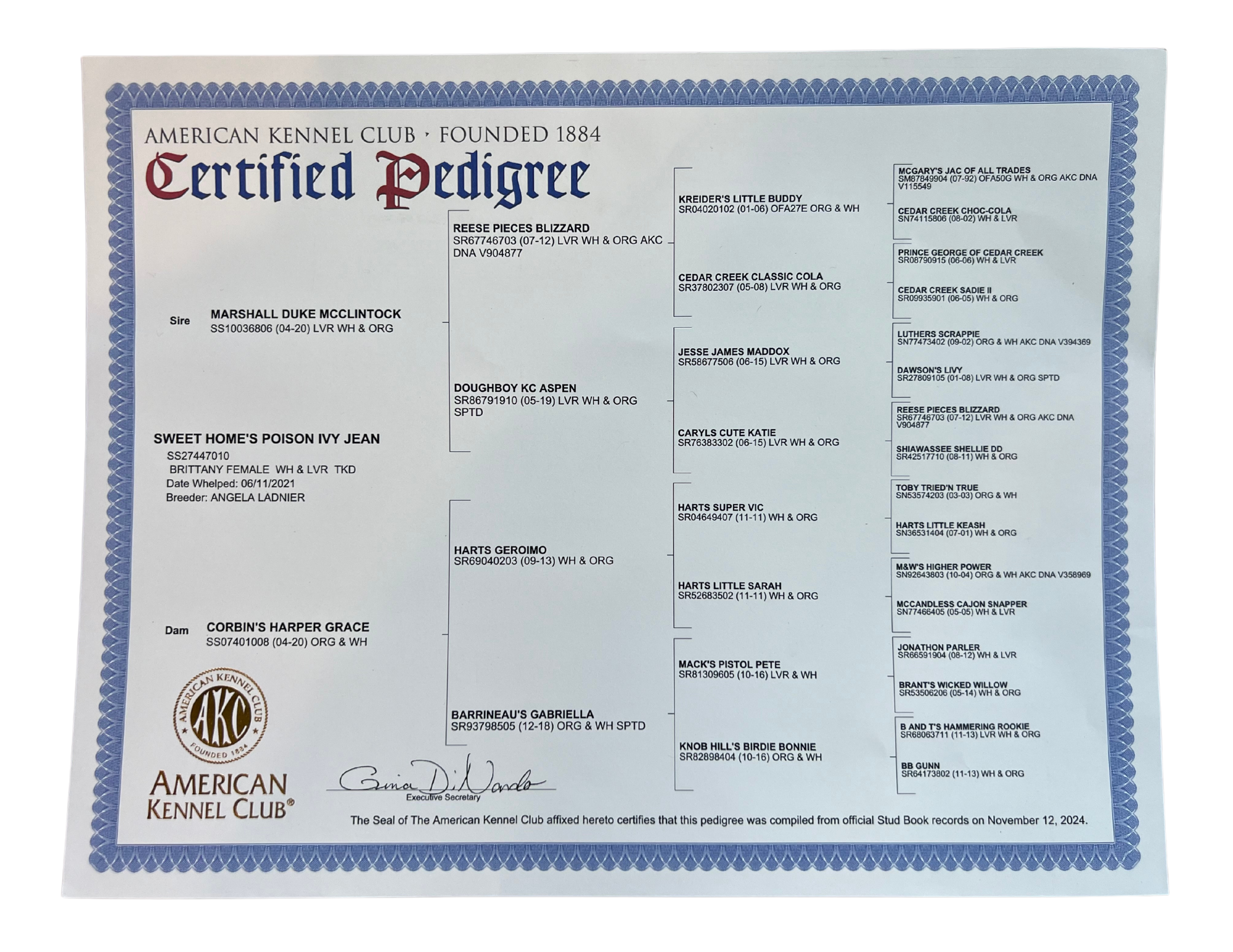 Sweet Home’s Poison Ivy JeanIvy is the whole package. She has excellent drive & focus in the field. Simultaneously at home she is so affectionate. She loves to work, but also loves her humans and fellow dogs.